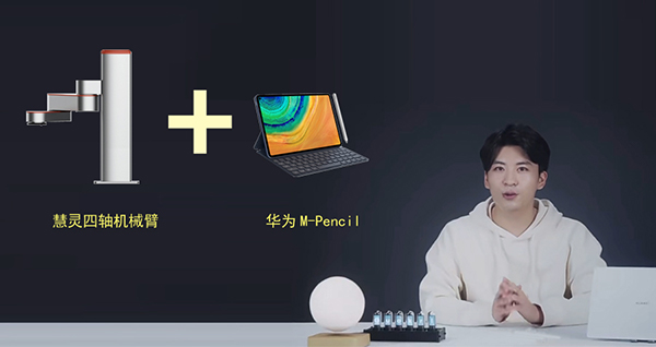 華為手寫筆和慧靈四軸機(jī)械臂,共同繪制出水芙蓉圖