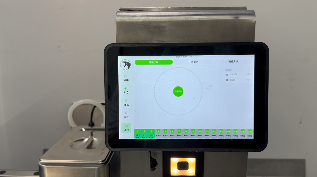 食品安全是茶飲行業的基礎保障,而慧靈奶茶機通過自動化操作和自動清洗功能,將衛生管理提升到了一個新的高度。這款機器配有一鍵自動清洗功能,用戶無需手動操作,機器即可自動完成內部管道和設備的清潔工作,有效降低了人為清洗不徹底帶來的食品安全風險,確保每一杯奶茶都在干凈衛生的環境中制作。