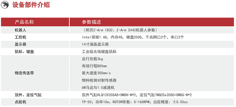 編程軟件 HitbotStudio 軸數 4 最大負載 3KG 最大臂展 420mm 一軸臂展 220mm 二軸臂展 200mm 一軸旋轉范圍 ±90° 二軸旋轉范圍 ±164° Z軸行程 240mm 重復定位精度 ±0.03mm 連接方式 Wi-Fi/Ethernet I/O接口 數字量輸入(隔離):9 數字量輸出(隔離):3 碰撞檢測 支持 拖動示教 支持  |