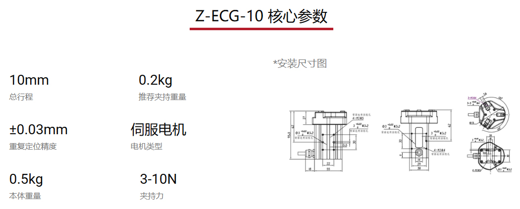 慧靈科技推出的Z-ECG-10三指定心電爪,具備+0.03mm的重復定位精度,確保每次抓取都能達到高精度要求。這對于那些需要極高定位精度的行業,例如電子元件組裝和精密儀器制造,尤為重要。